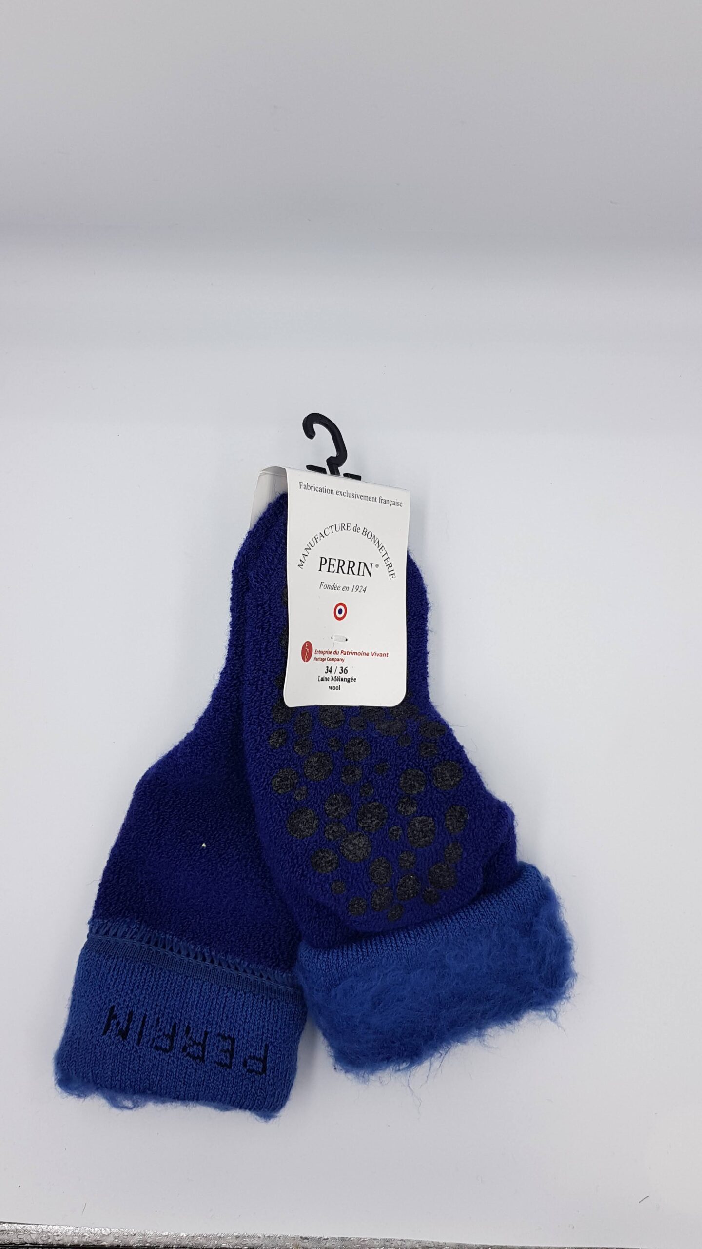 Chaussettes chaussons anti-dérapants en Laine mélangée taille 34/36 Manufacture Perrin ( composition: Laine 50%, Acrylique 40%, Polyamide 8%, Elasthhane 2% )