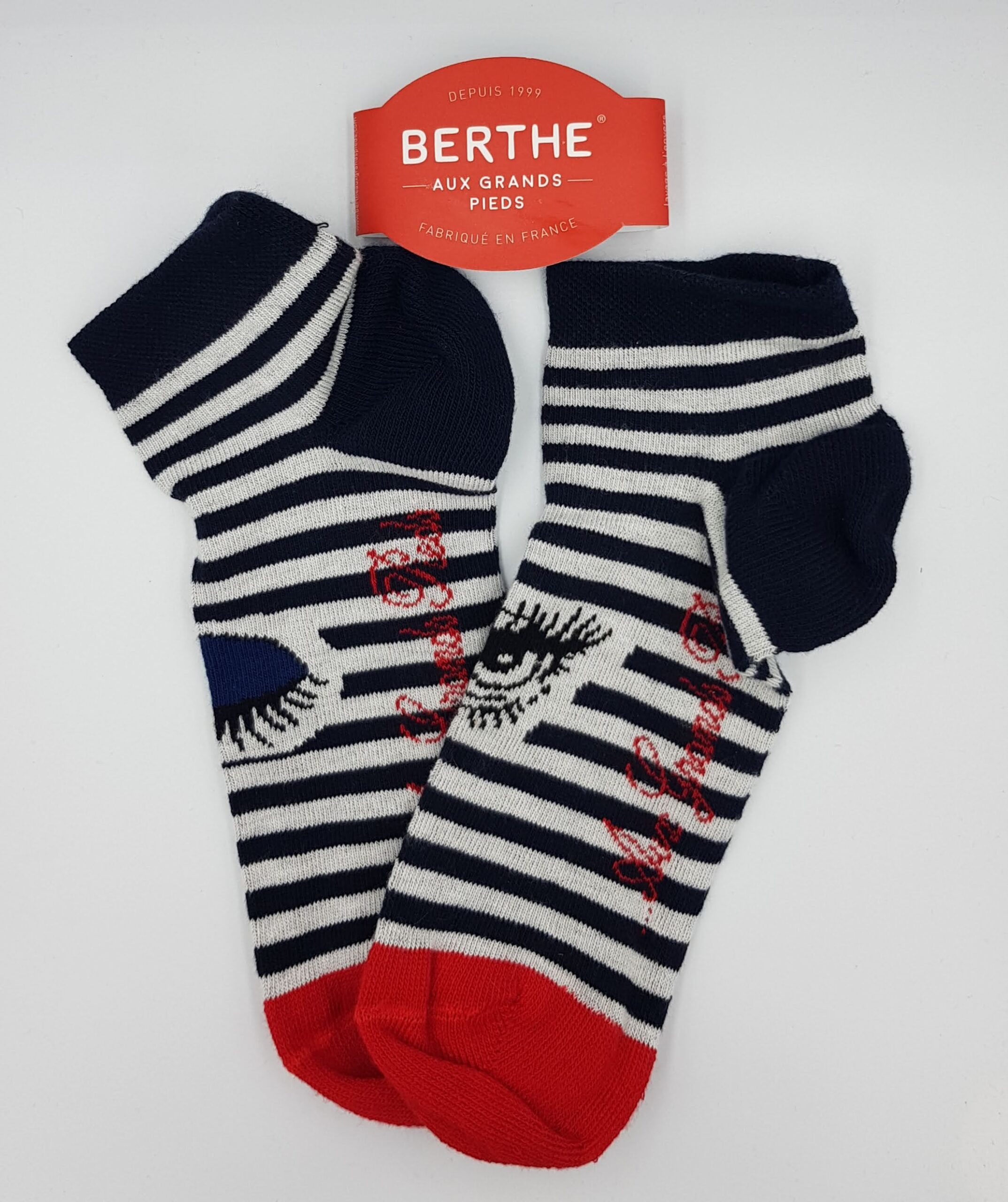 Chaussettes socquettes à rayures couleur marine iconique clin d’œil Berthe pour homme